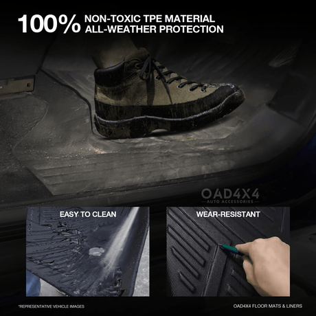 Hassle-Free CleaningMud, spills, and crumbs? No worries! Just shake, wipe, or rinse your mats, and they’re good as new. Keep your car looking fresh with minimal effort.