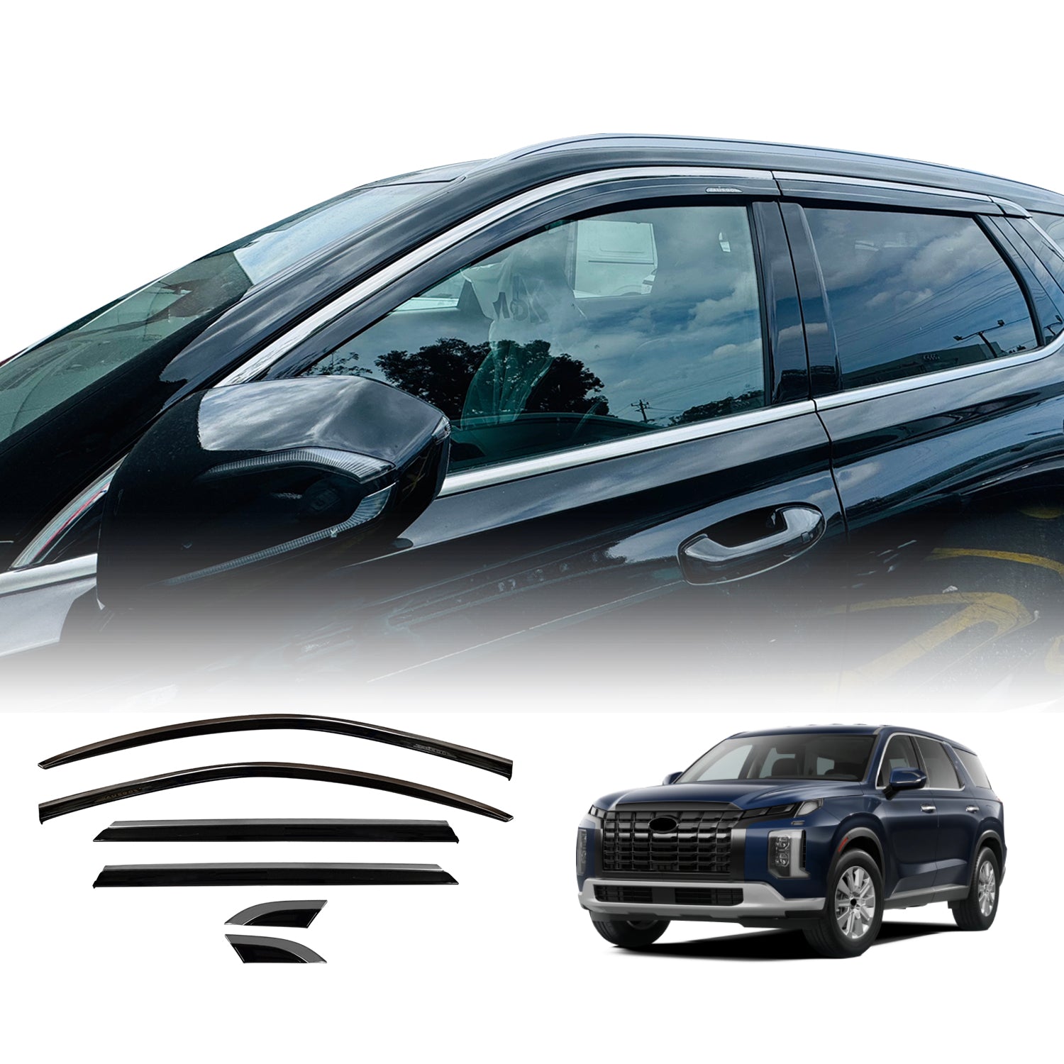 Stainless Edge Weather Shields for Hyundai Palisade 2019-2025 6PCS