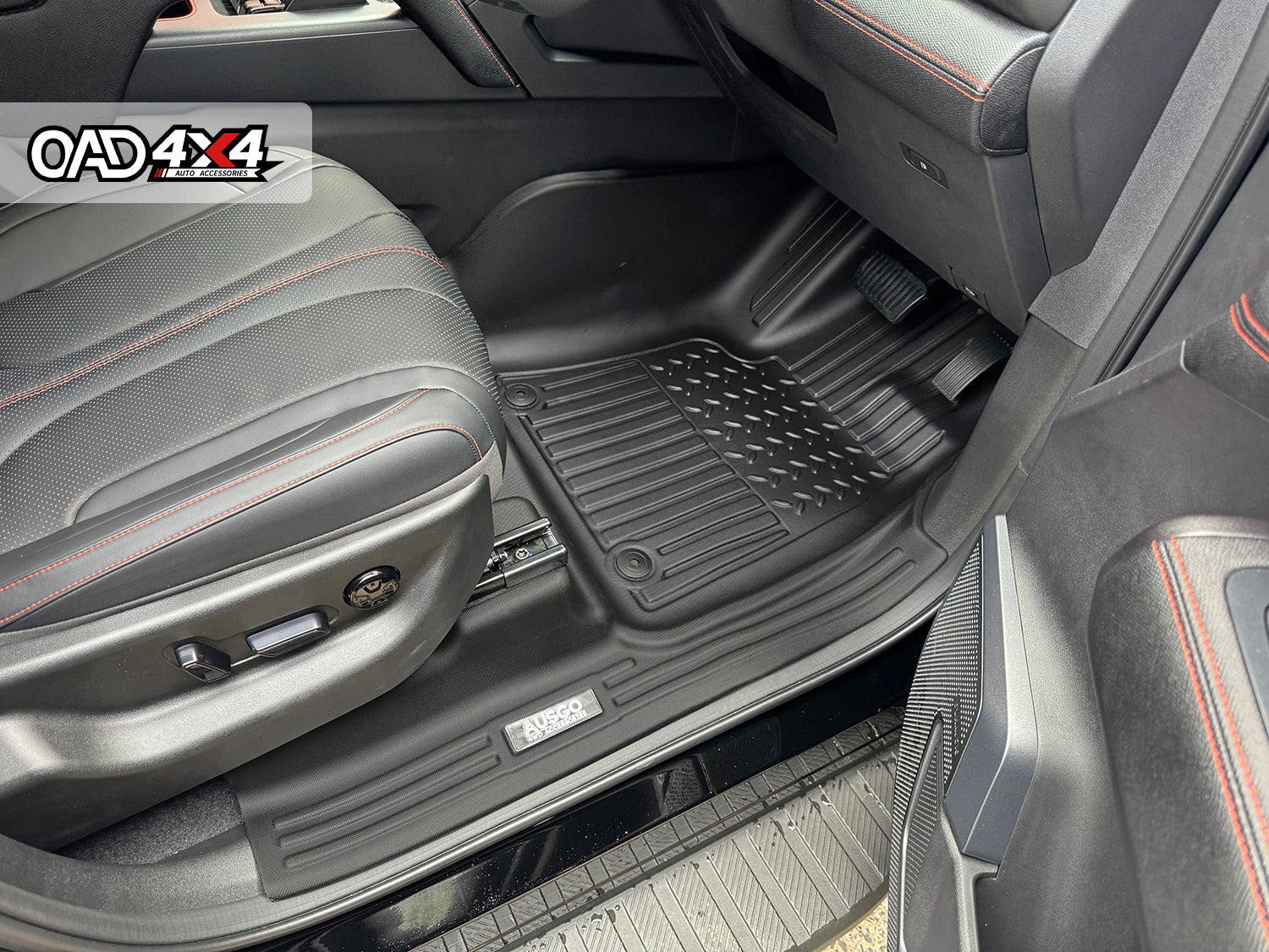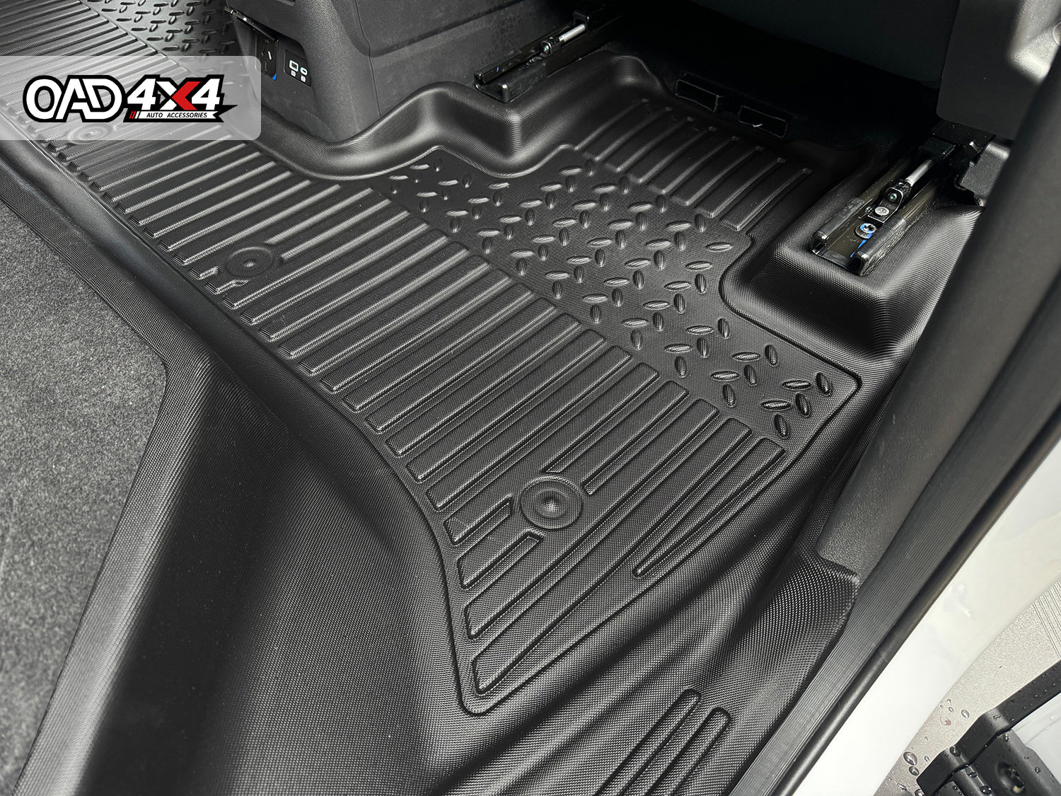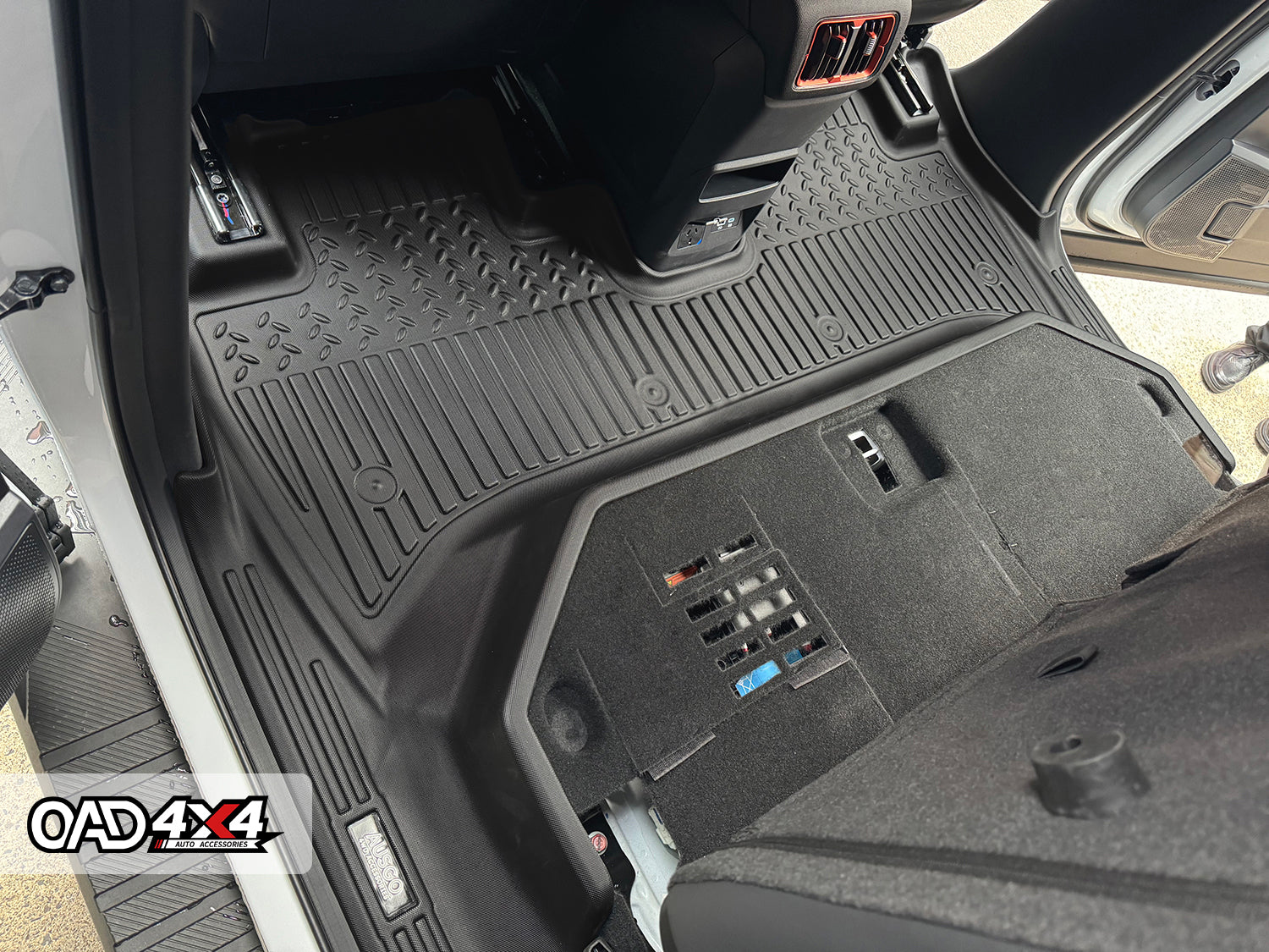 OAD4X4 floor liners are made from premium-grade TPE (Thermoplastic Elastomer), a high-performance material that combines the flexibility of rubber with the strength and durability of plastic, offering excellent resistance to water, dirt, wear, and harsh weather.
