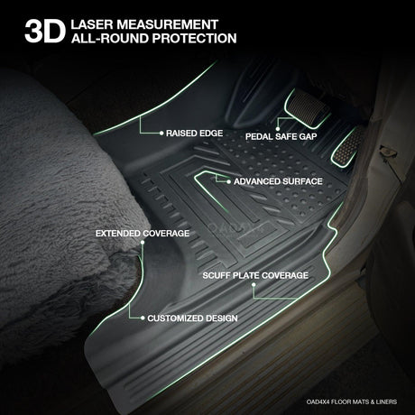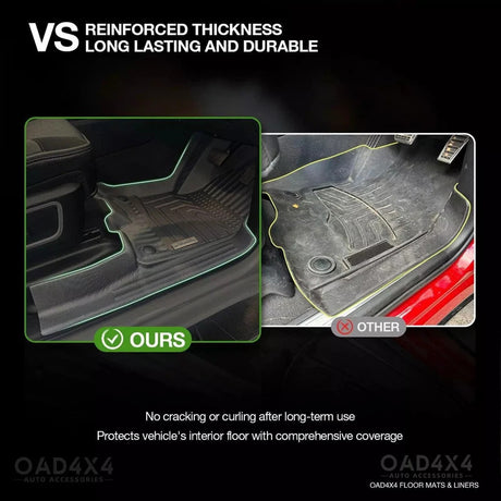 While OEM mats offer basic protection, our liners are crafted from high-quality TPE material, offering enhanced wear resistance, waterproofing, and longevity.