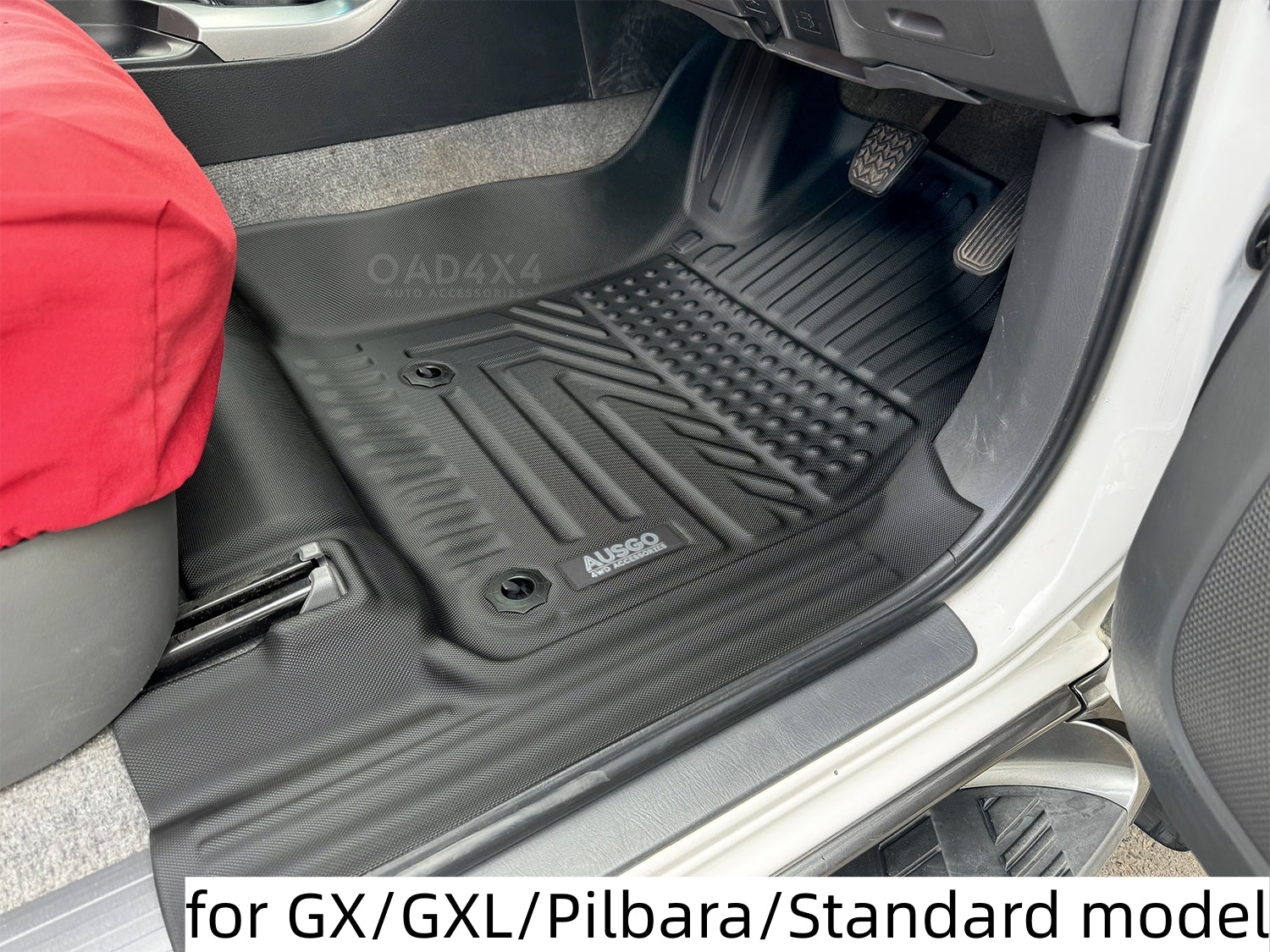 OAD4X4 floor liners are made from premium-grade TPE (Thermoplastic Elastomer), a high-performance material that combines the flexibility of rubber with the strength and durability of plastic, offering excellent resistance to water, dirt, wear, and harsh weather.
